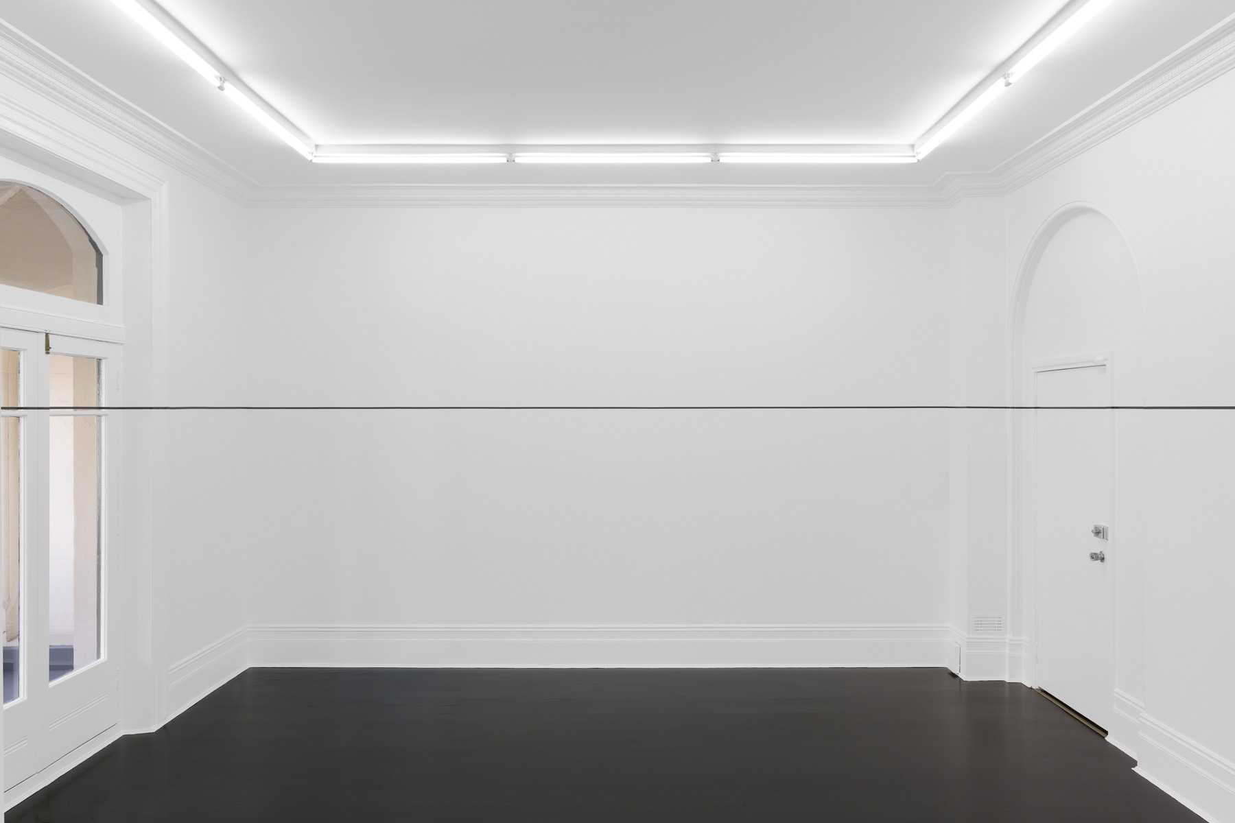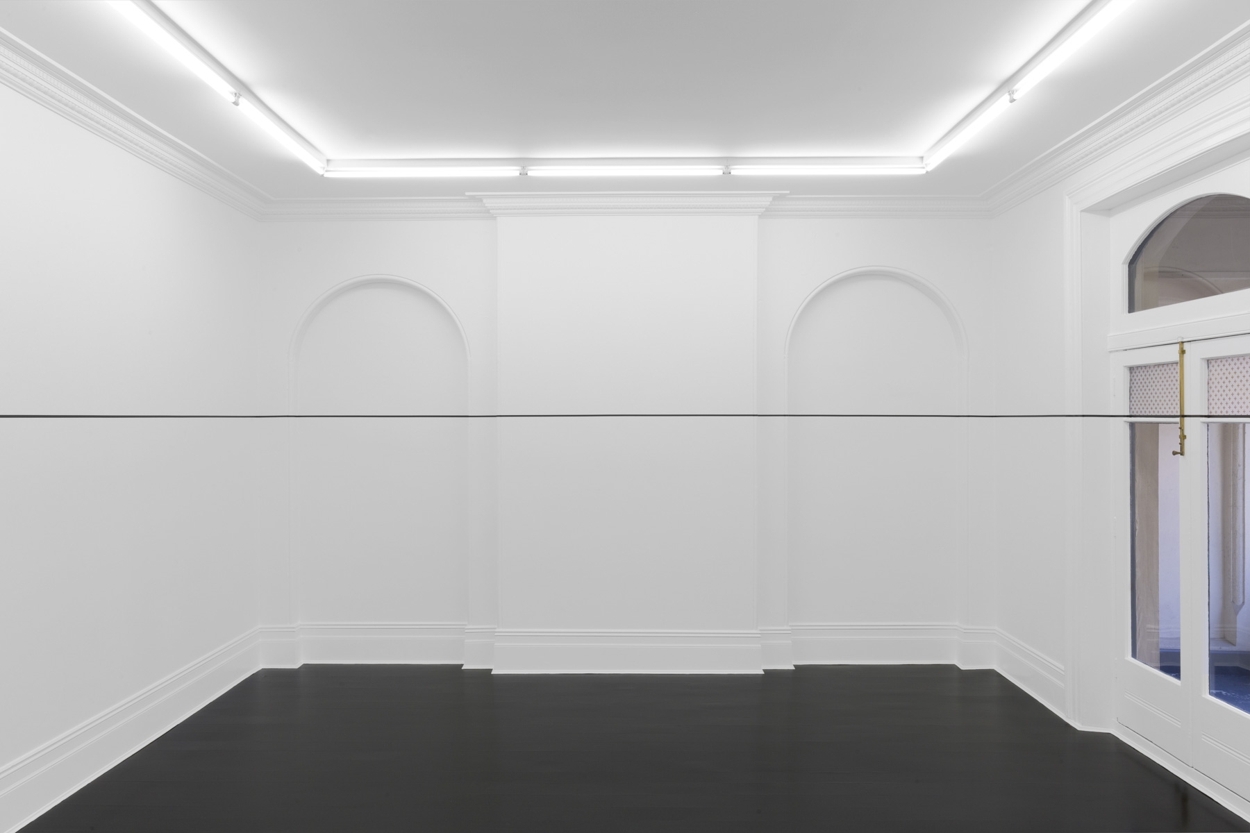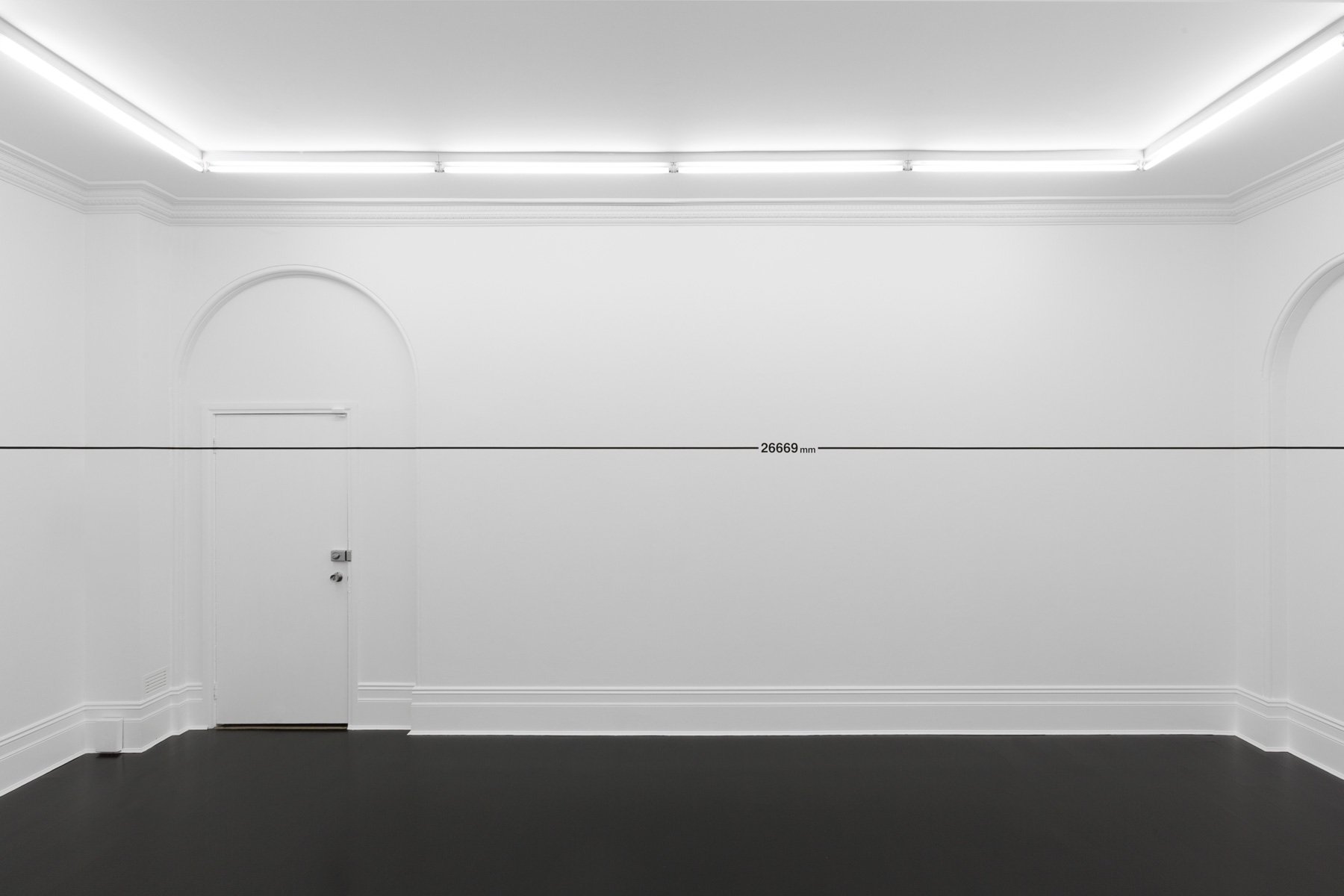 Bochner’s series of works using measurement began as sketches in 1967, and developed during 1968. In 1969 he made an exhibition titled ‘Measurements’ at Galerie Heiner Friedrich in Munich. It was here that Bochner made the first iteration of ‘Measurement Room’, for which the architectural features of a room were measured and marked out directly onto its walls.